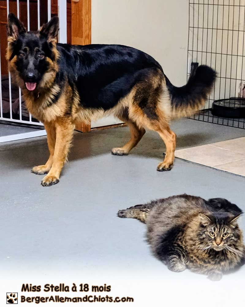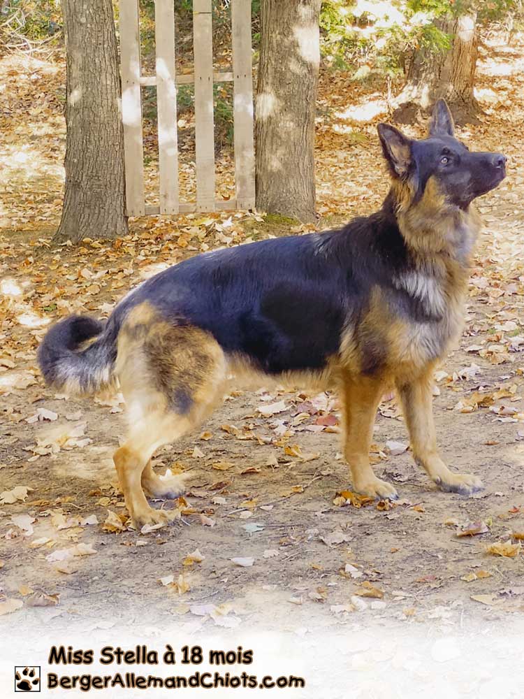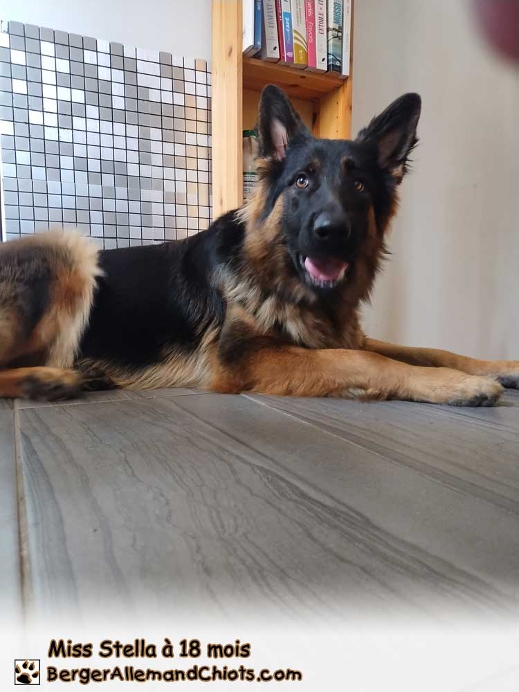 Douce chienne de maison qui veut uniquement ĂŞtre près de l’humain. Elle apprĂ©cie les amis Ă 4 pattes mais conserve une prĂ©fĂ©rence marquĂ©e avec les humains. Elle s’est faite  »Chummy  » avec le chat, mais ce dernier ne doit pas trop tentĂ© la camaraderie pour le moment en se dĂ©plaçant trop rapidement. Son obĂ©issance est Ă parfaire au quotidien et elle apprend vite et elle s’habille de bonnes manières pour nous plaire et bien faire. Elle apprend Ă©galement de la meute par son regard attentif et discret. Les tests ADN puretĂ© de la race, myĂ©lopathie dĂ©gĂ©nĂ©rative et les 272 maladies du berger allemand sont revenus du laboratoire avec aucune anomalie et aucune copie. Elle a Ă©tĂ© radiographiĂ©e hanches et coudes et le diagnostic est excellent pour la reproduction. Elle deviendra avec satisfaction une gĂ©nitrice Fredhouse. Calme et brillante, elle se laisse manipuler avec aisance. Elle n’est pas malade en voiture, se laisse peigner et aborde un intĂ©rĂŞt particulier pour l’affection. Elle est au Poil et nous sommes honorĂ©s de la compter parmi nous ! đź‰