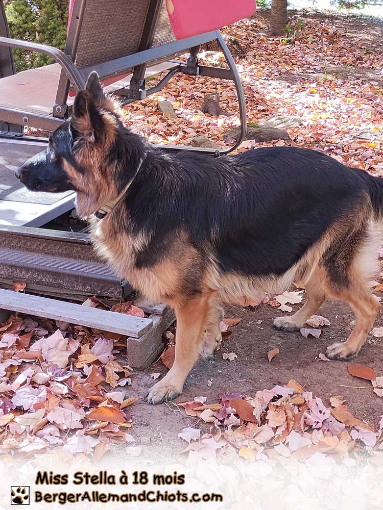 Il est né le 26 octobre 2020, il est beau et remarquablement attachant. Sa fiche santé est excellente, bon chien de famille, exempt de la myélopathie dégénérative avec hanches et coudes en excellence. Tous les tests de santé sont effectués, hanches et coudes parfaits. Aucune copie de la myélopathie dégénérative et il peut saillir toutes nos femelles. 215 tests santé et traits ont été effectués aux E.U par ADN et tous sont revenus clairs. Sa personnalité se démarque par un caractère très sociable avec les humains, les enfants, et les autres animaux. Inné en lui d’être un gardien, fidèle au berger allemand. Nous n’avons que d’éloges à son égard! Nous aimerions bien vous donner un petit trait de caractère désagréable mais je crois que l’humain en possède davantage (rires). Il est très avantageux de donner un bon début de vie à un berger allemand pour obtenir ces résultats. Il faut être en sa présence pour comprendre que c’est un chien qui frôle l’excellence. C’est tests d’ADN pourront être fournis sur demande lors de l’acquisition du chiot. Sa fourrure est noir et feu à poil court.