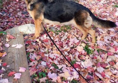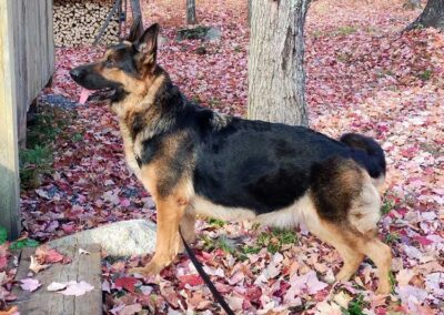 Mes Bergers allemands sont des chiens dits de travail et non de conformation. J’ai des Ă poils courts ou Ă poils longs. Mes mâles pèsent en moyenne 100lbs et les femelles 85lbs.